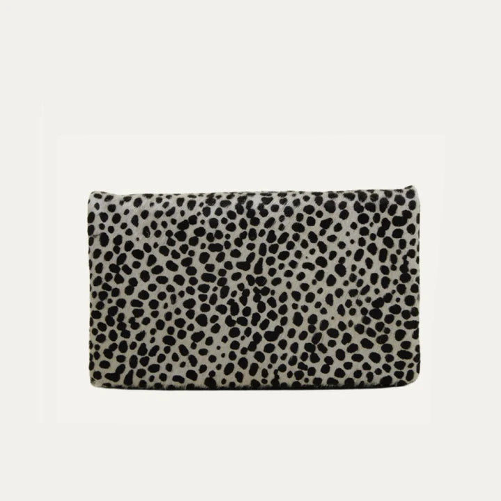 Black and White Cheetah Leather Belt Bag with a Black Leather Crossbody Strap