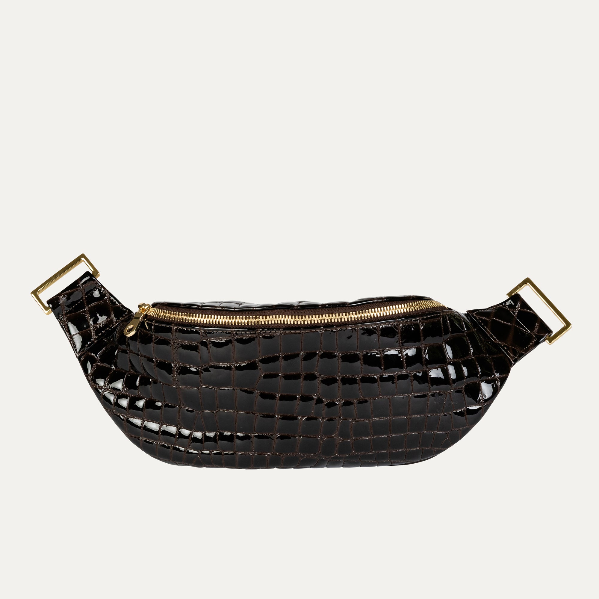 Brown Croc Print Patent Leather Crossbody and Fanny Pack with Brown Strap